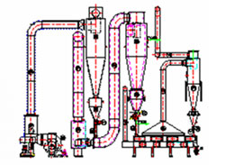 The air alongwith the material will discharge from the top at the required set temperature into the dust separation unit (Cyclone/Multiclone/Bag Filters) for separation from the air. |